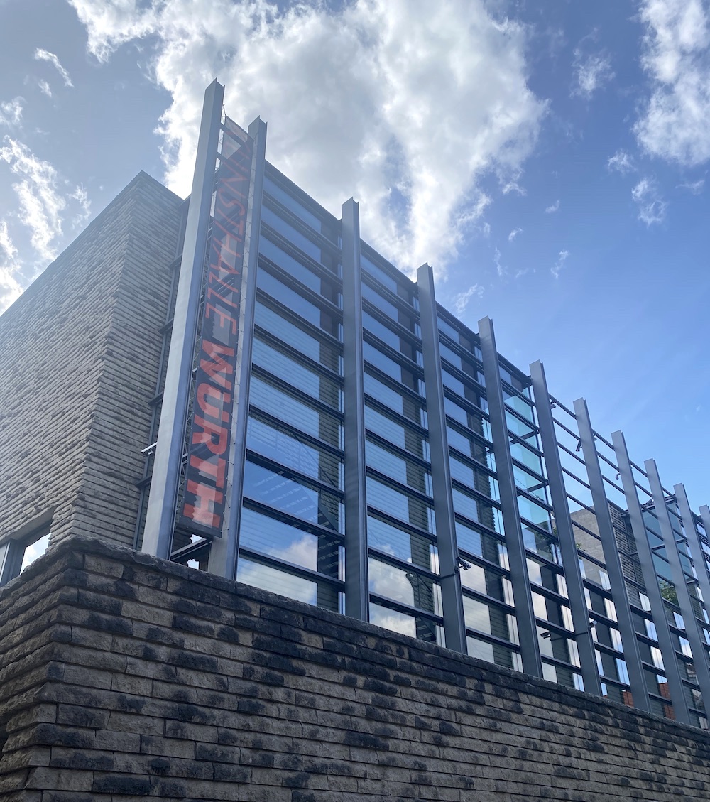 Floor installation with a physical wooden wedge that lifts one of two holographic drawings/wedges. Shown in the New Art Exchange OPEN, Nottingham.