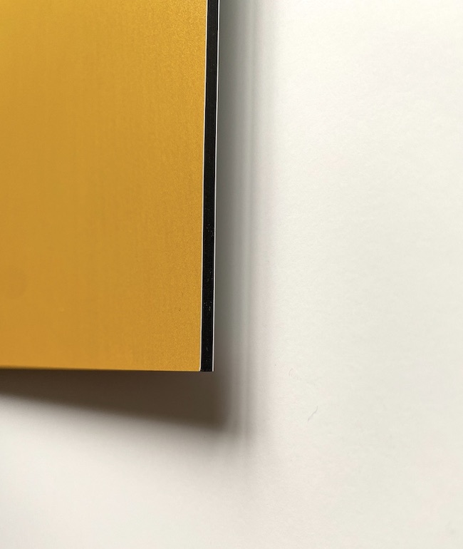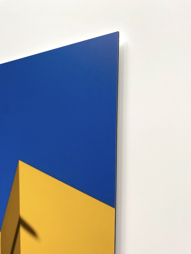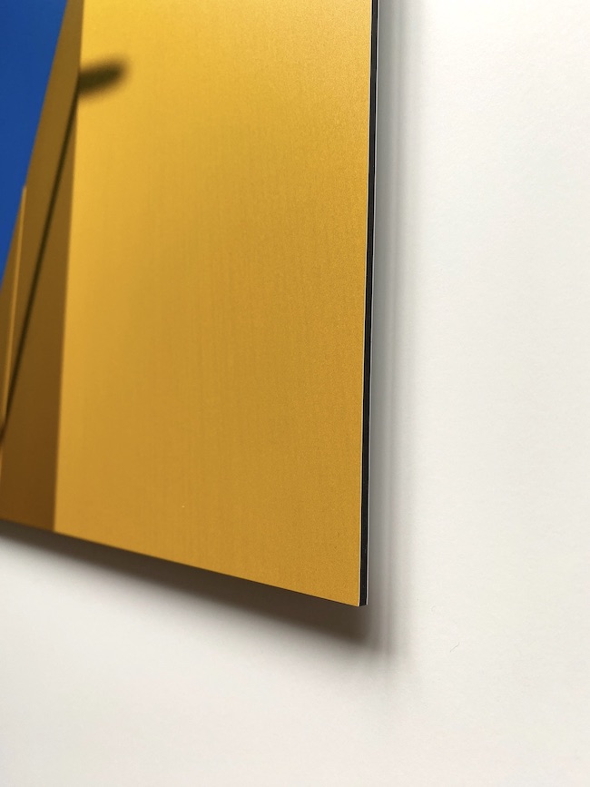 Printing onto metal appears to emphasise a strange robustness I wasn’t expecting. Something more than a digital print. Something less than an object. There is a structural ‘reinforcement’ caused by the visibility of the 3mm aluminium structure protruding from the display surface.