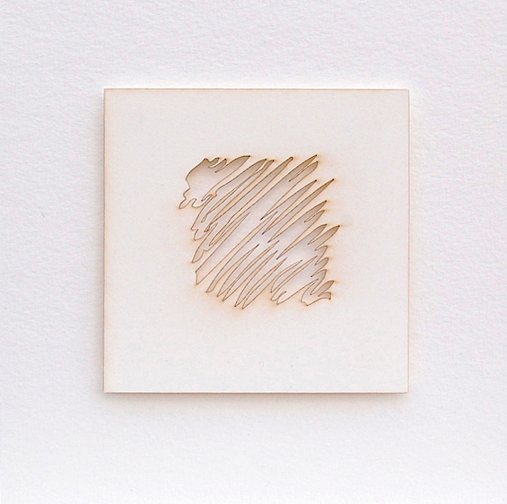 A hand-drawn, gestural mark has been laser-cut from traditional watercolour paper.