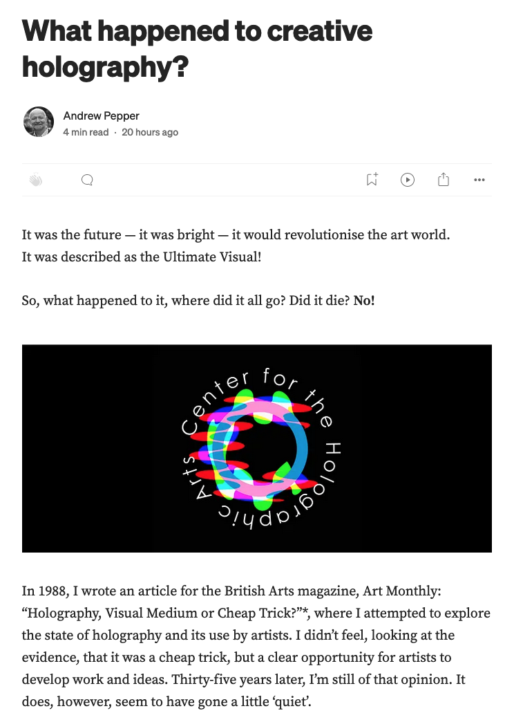 Published on Medium.com this article explores the quiet shift of creative holography into 20th-century art collections.